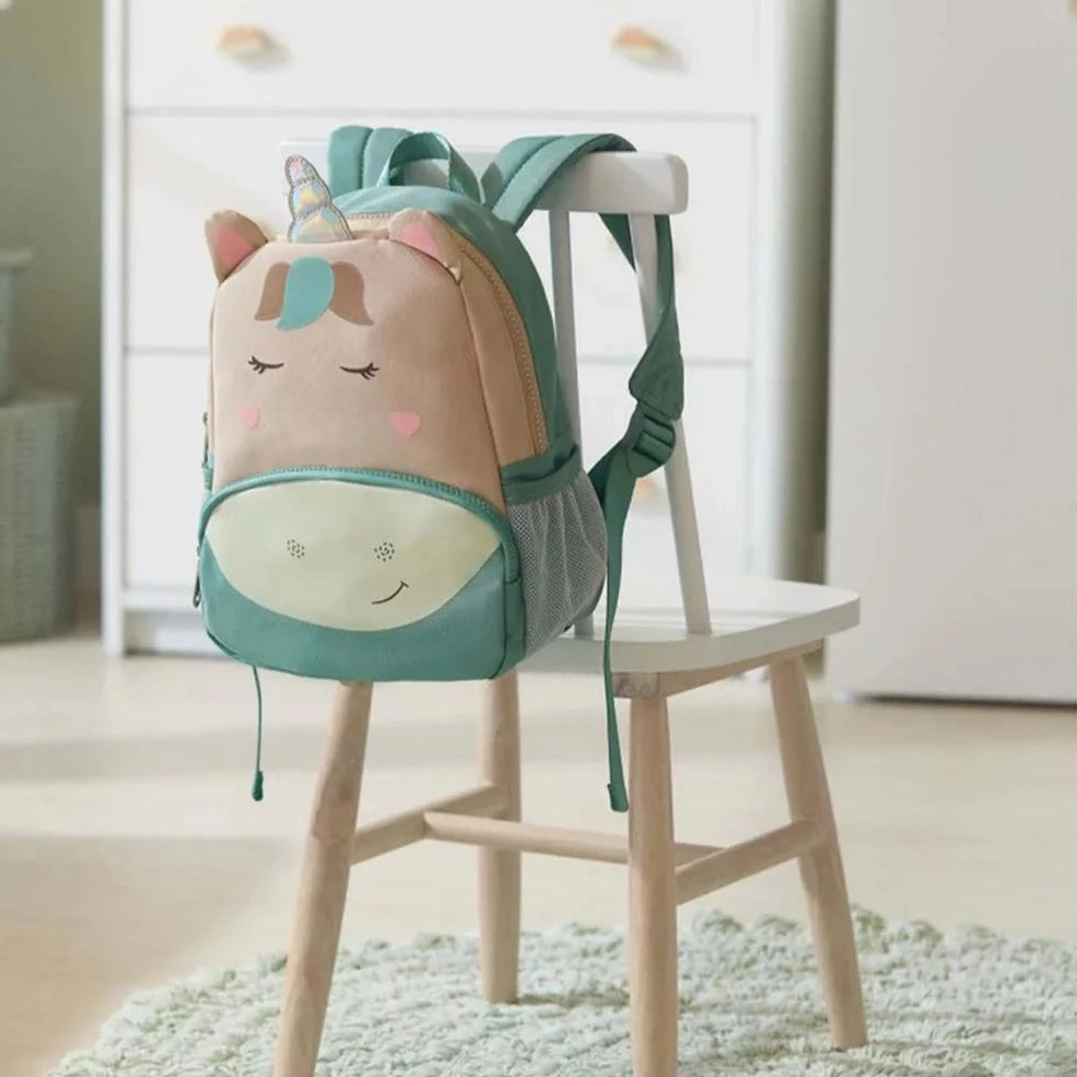 Całość ozdobiona jest postacią jednorożca, a plecak wyposażony jest w niewielką rączkę do łatwego przenoszenia.