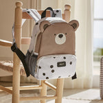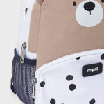 Całość ozdobiona jest postacią misia, a plecak wyposażony jest w niewielką rączkę do łatwego przenoszenia.