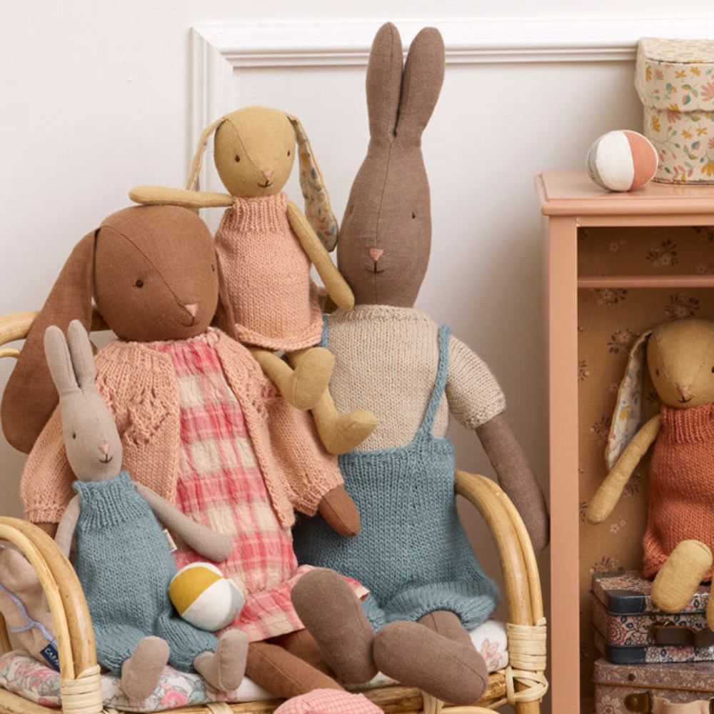 Maileg króliczek w ogrodniczkach to klasyczna, miękka przytulanka z naturalnych tkanin, która od pierwszego dotyku zachwyca i daje poczucie ciepła.