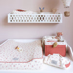 Pojemnik na mokre chusteczki dostępny jest w różnych wzorach Cam Cam Copenhagen, co pozwala na dopasowanie go do przewijaka lub torby na pieluchy.