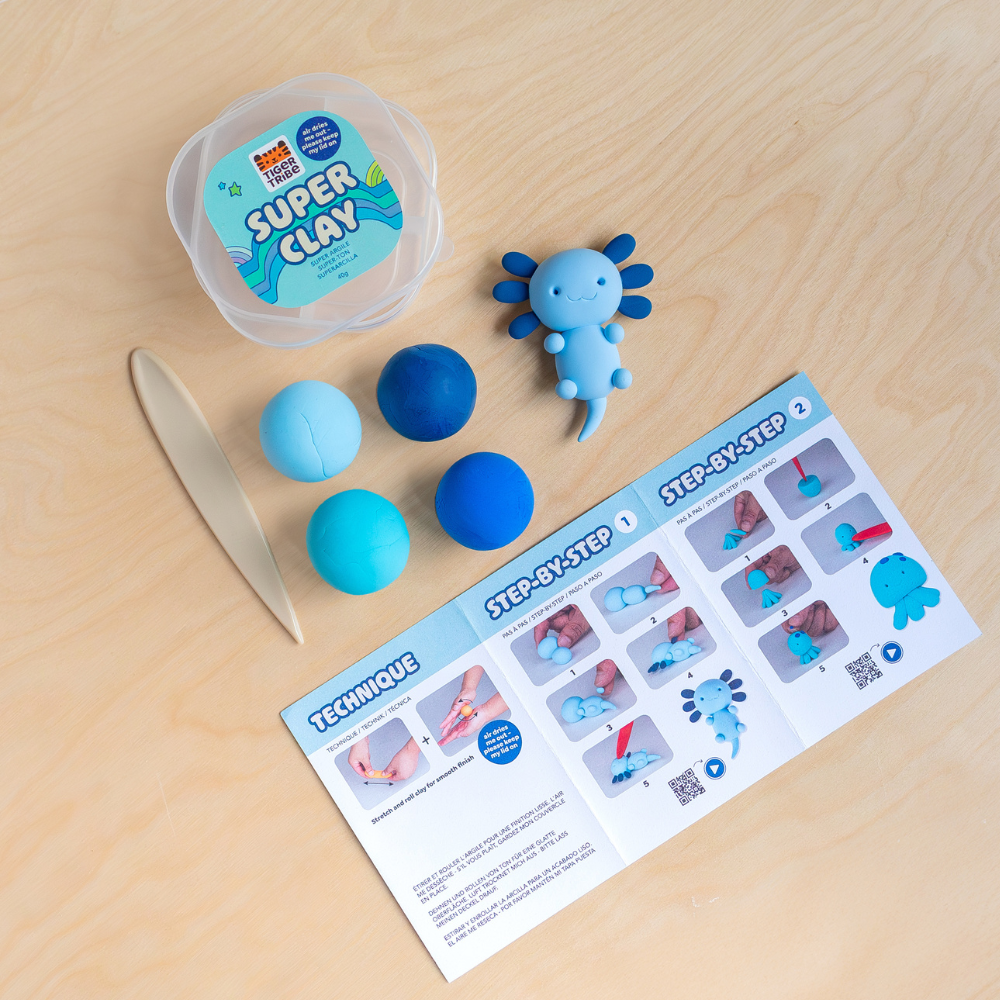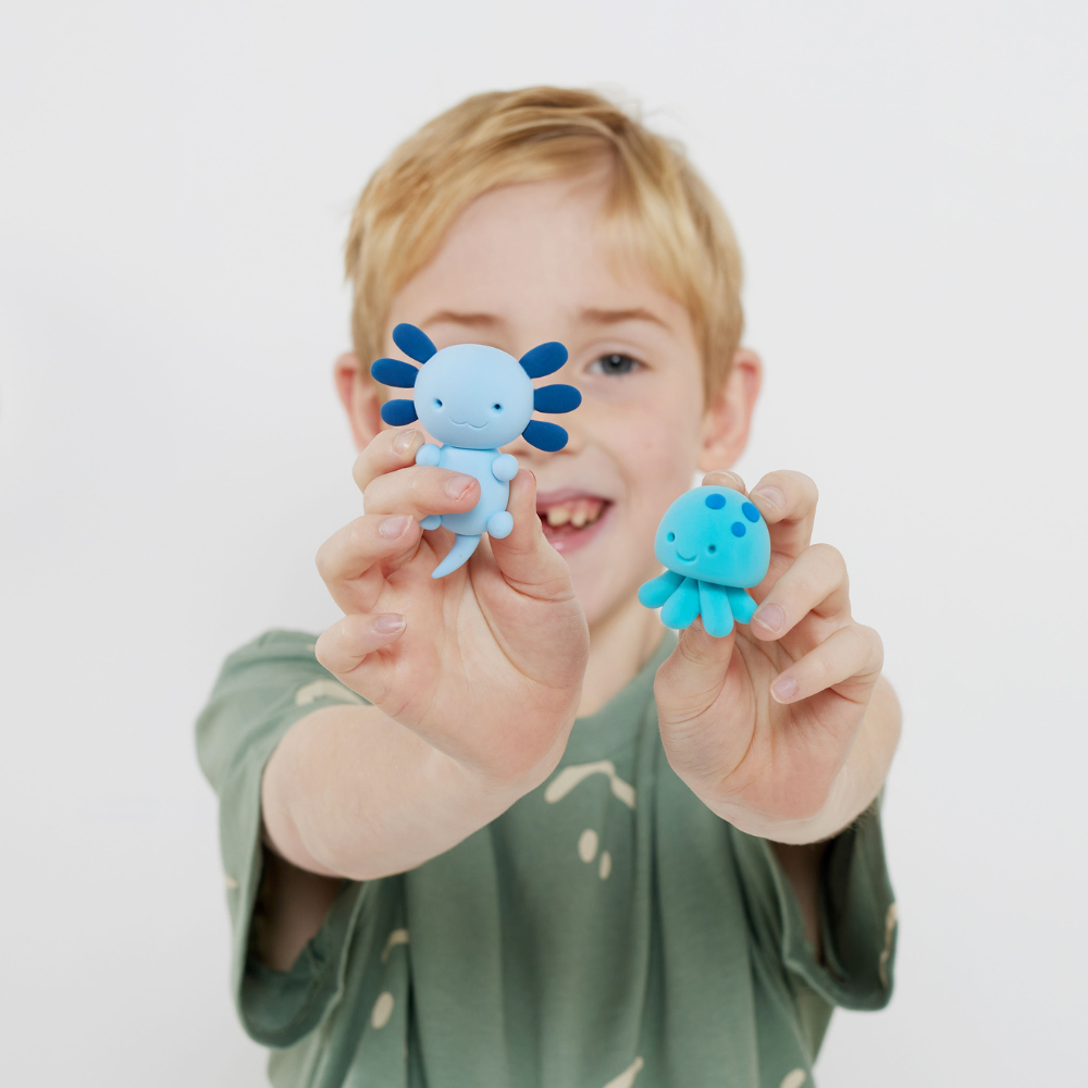 Miękka, lekka i przyjemna w dotyku masa plastyczna zachęca do ugniatania, lepienia i rzeźbienia – według ilustrowanej instrukcji albo własnej wyobraźni.