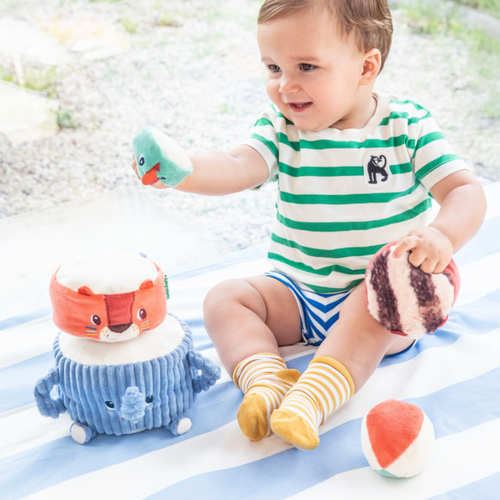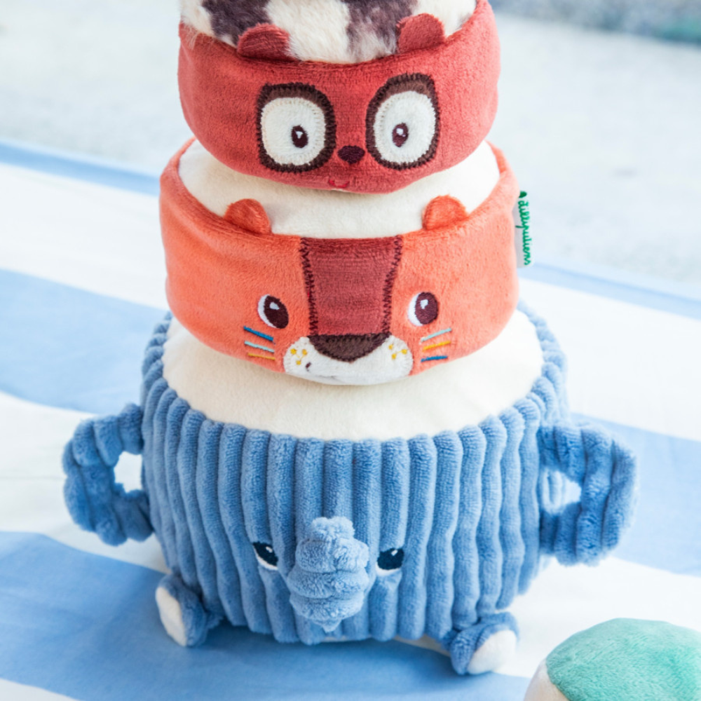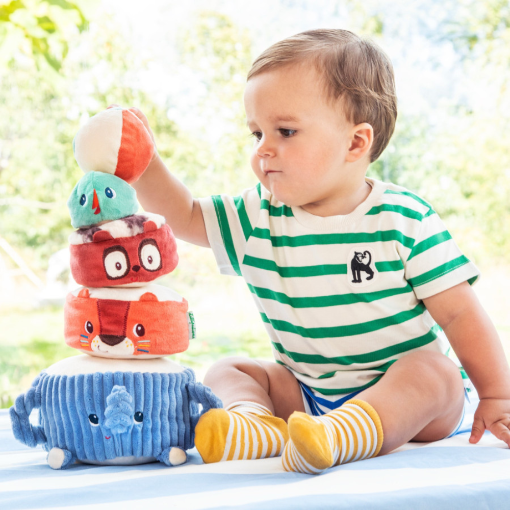 Piramida dźwiękowa z miękkimi zwierzątkami marki Lilliputiens to zabawka, która wciąga maluchy w świat akrobatów od 12 miesięcy.
