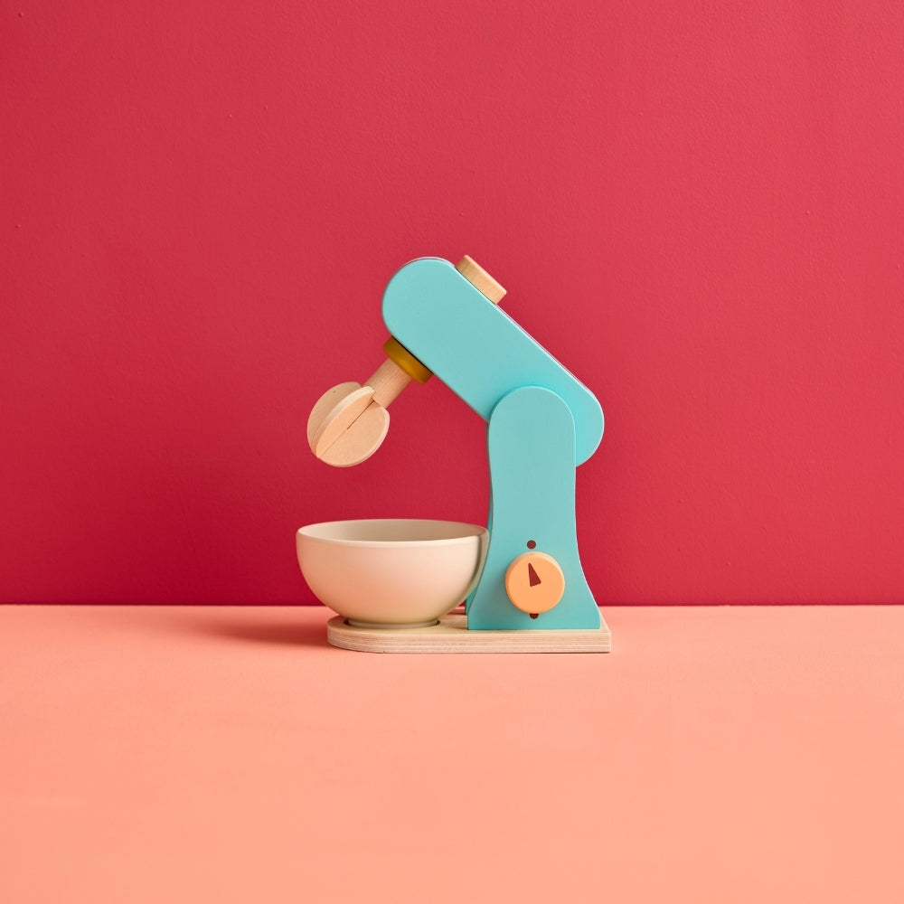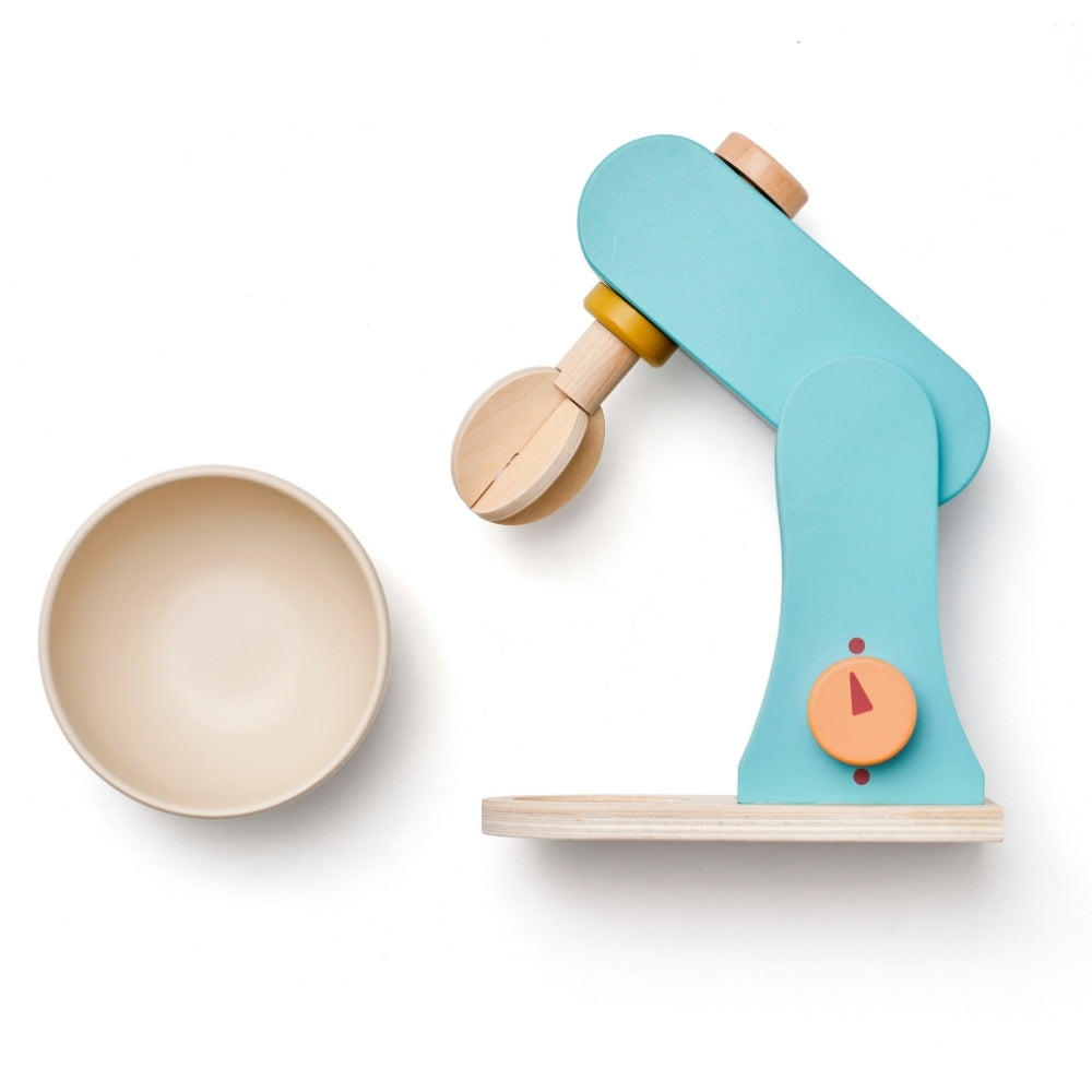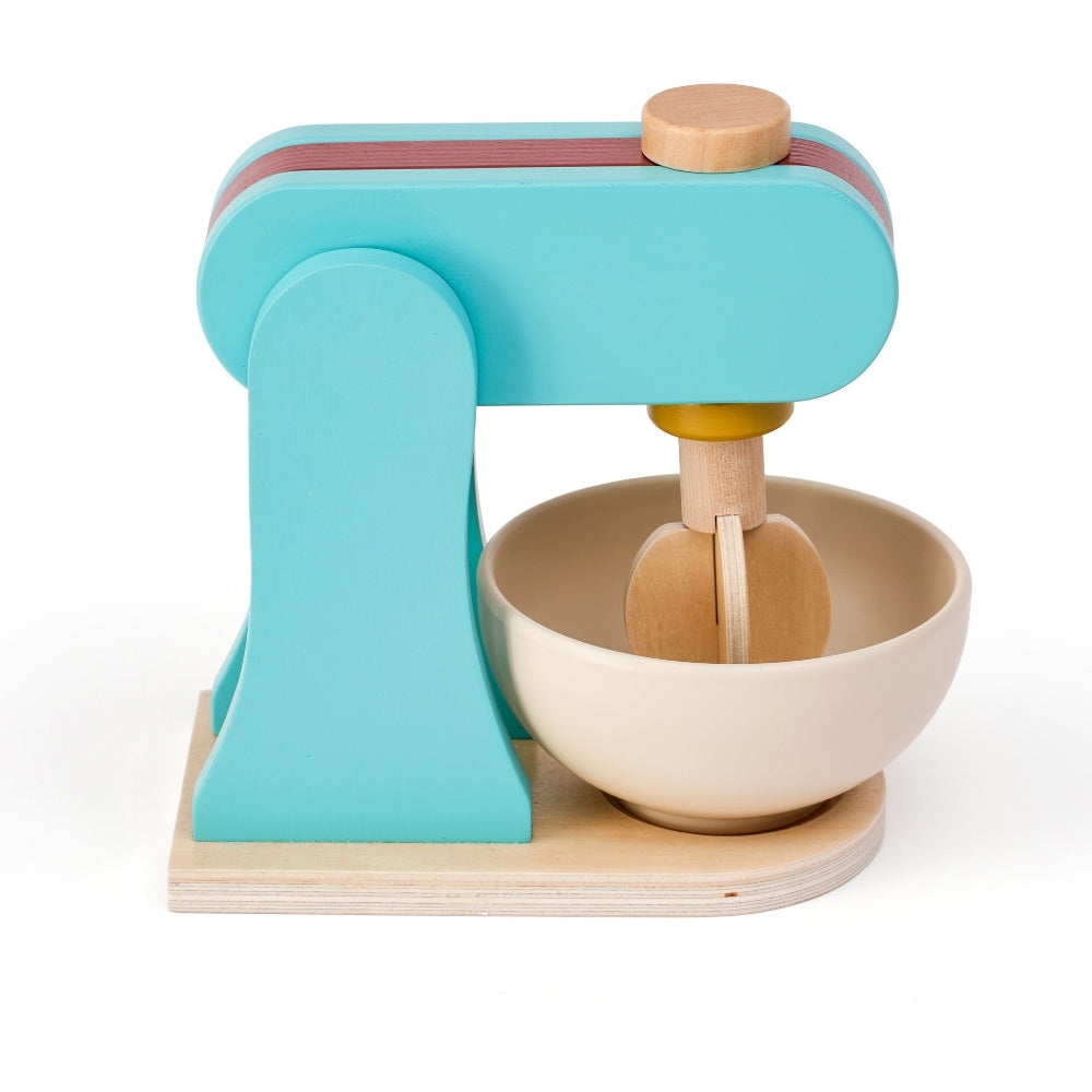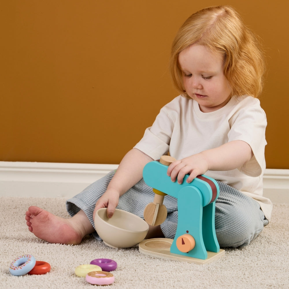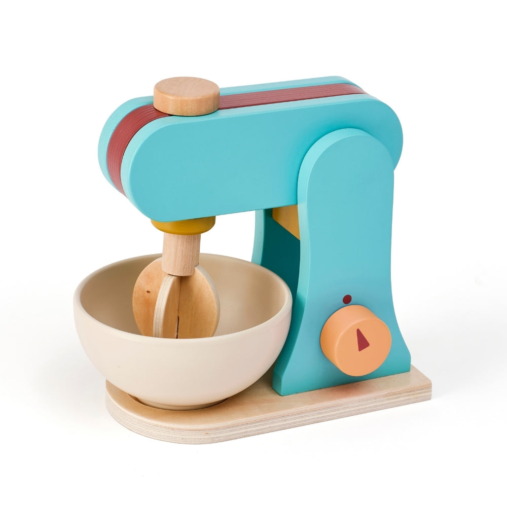 Drewniany mikser pozwala dziecku odgrywać scenki znane z codziennego życia, rozwijając samodzielność i umiejętności społeczne.