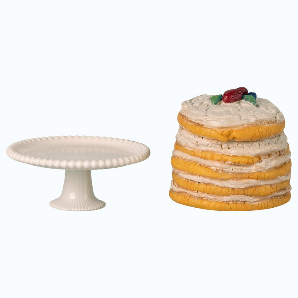 Maileg stworzył miniaturowy „deserowy kącik”, gdzie tort i patera stają się centrum świętowania – idealne do odgrywania urodzin, przyjęć i rodzinnych spotkań.