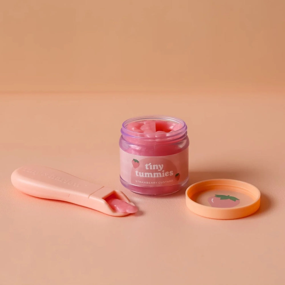 Tiny Harlow Zestaw do karmienia lalek Tiny Tummies miseczka i łyżeczka mus Truskawkowy