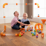 Air Toobz to bezpieczna dla dzieci dmuchawa, która wyrzuca kolorowe kulki z pianki EVA przez labirynt rurek, które można dowolnie ułożyć.