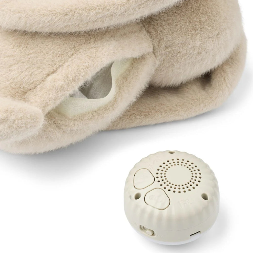 Szumiący króliczek Liewood odtwarza osiem uspokajających dźwięków, takich jak biały i różowy szum, śpiew ptaków czy szum fal, dzięki czemu łatwo dopasować go do potrzeb dziecka.