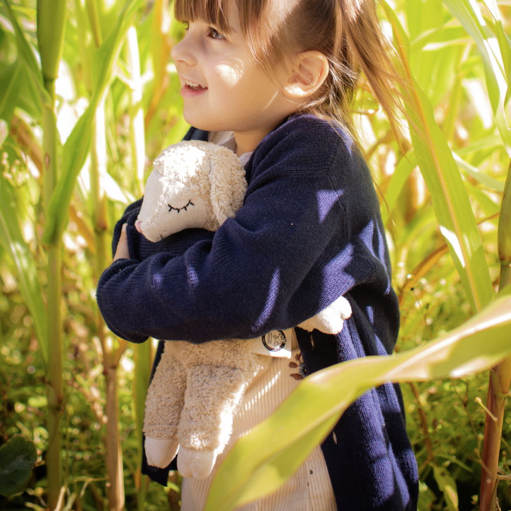 Dzięki naturalnym materiałom i kojącemu ciężarowi ta przytulanka termofor otula ciepłem podczas drzemek, czytania i spokojnych wieczorów.