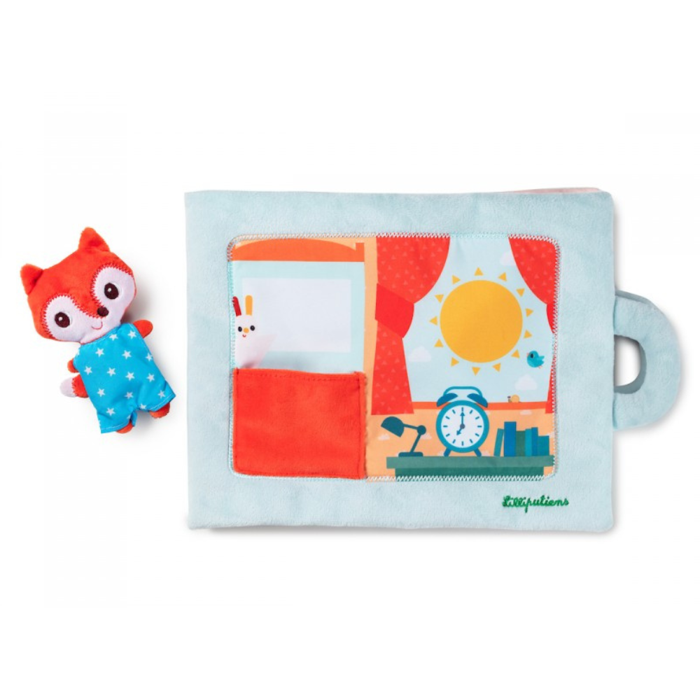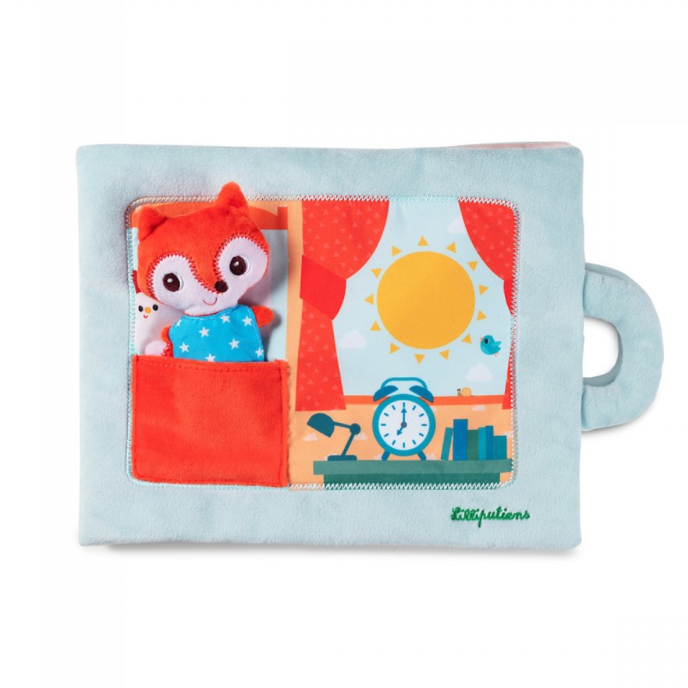 Książeczka Lilliputiens przedstawia codzienne doświadczenia liska, które można śledzić na kolejnych stronach, wykorzystując odczepiane lub odchylane elementy z różnych tkanin.