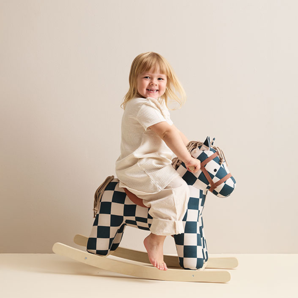 Konik na biegunach Kid`s Concept Miro to najmodniejszy towarzysz dziecięcych przygód – stylowy, solidny i gotowy, by wnieść odrobinę blasku do pokoju malucha. Ma miękką w dotyku grzywę i ogon, wygodne siodło oraz płaszcz z tkaniny w kratę, więc szybko staje się „ulubieńcem” do przytulania i zabawy.