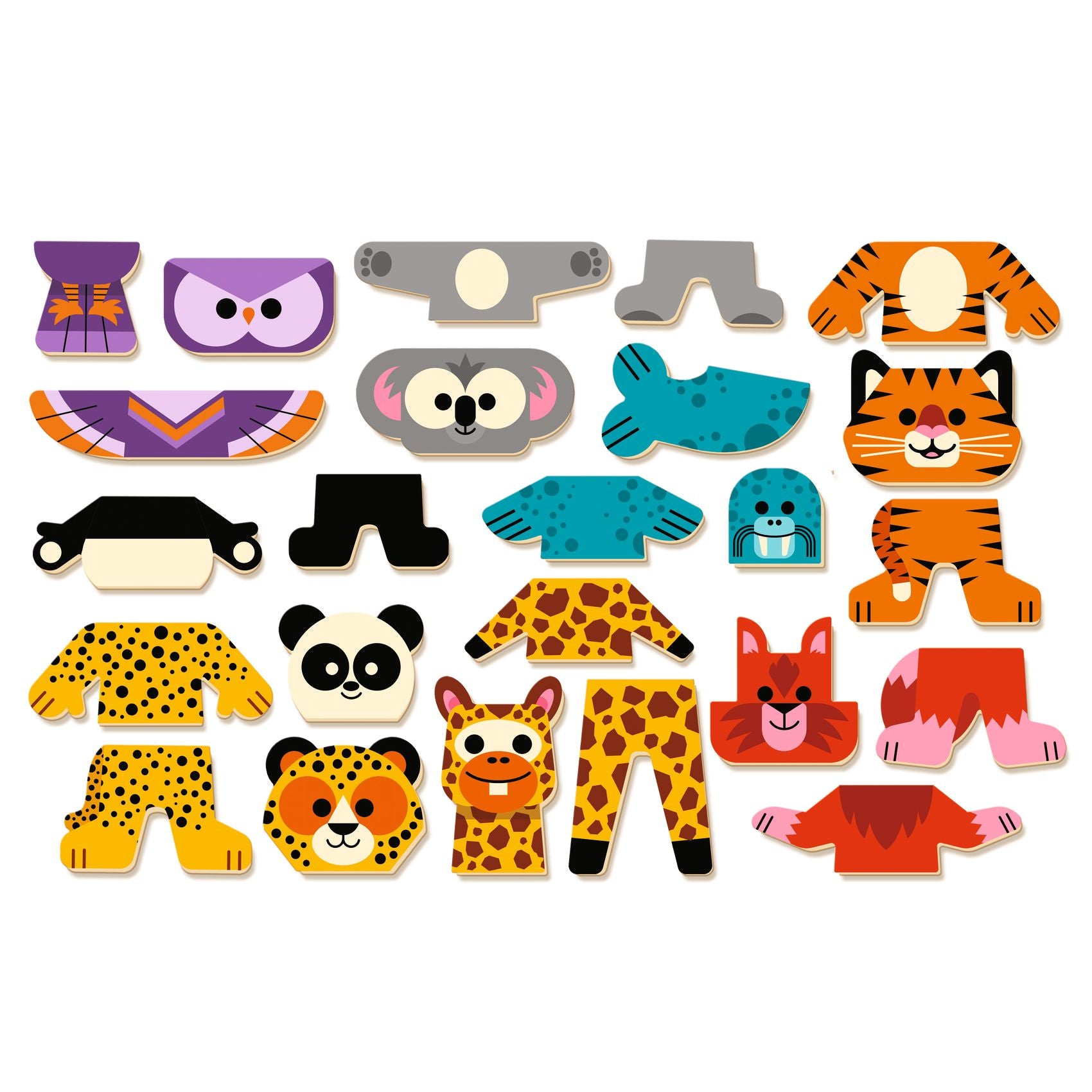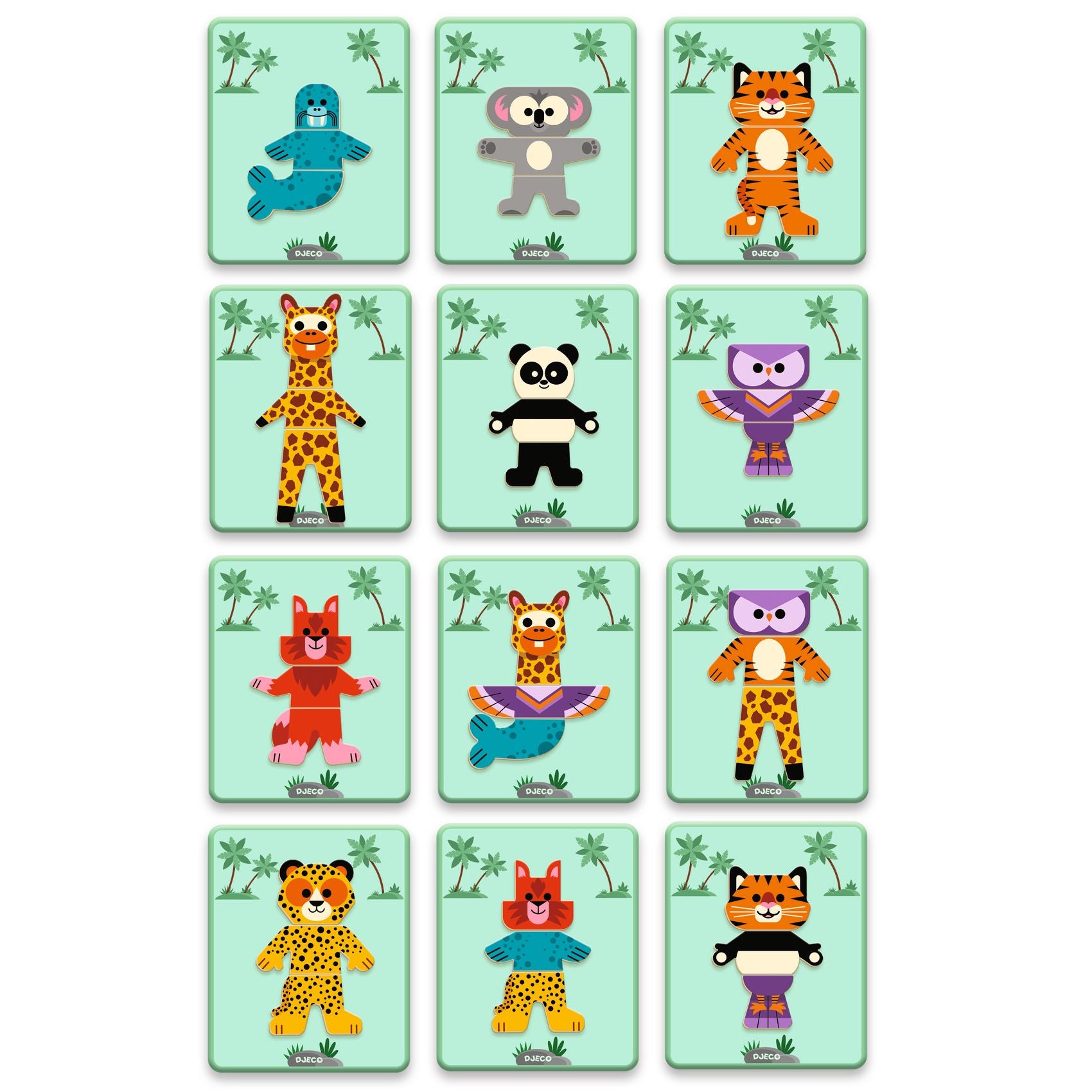Dzięki temu wyjątkowemu zestawowi Djeco dzieci mogą układać drewniane, magnetyczne elementy bezpośrednio na metalowym pudełku, tworząc radosne zwierzątka inspirowane kartami ze wzorami.