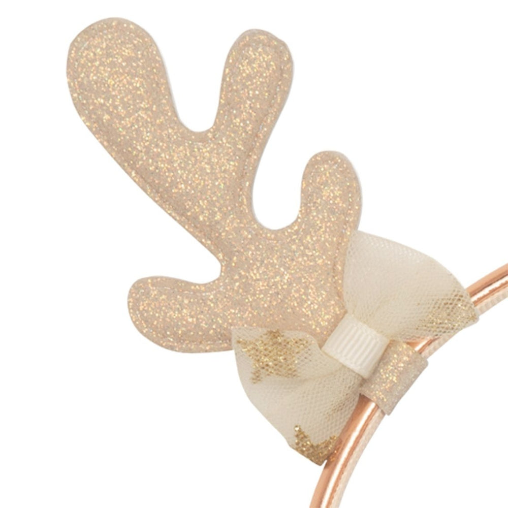 Wykonana w złotym kolorze, z miękkimi rogami renifera ozdobionymi błyszczącym brokatem, pięknie podkreśla dziecięcy urok i nadaje się idealnie na święta czy zimowe przyjęcia.