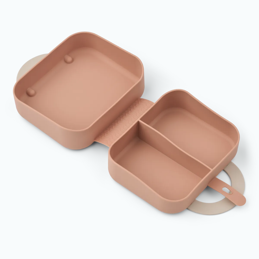 Pudełko śniadaniowe Liewood to miękkie, składane akcesorium wykonane w 100% z trwałego silikonu – idealne do szkoły i na wycieczki.