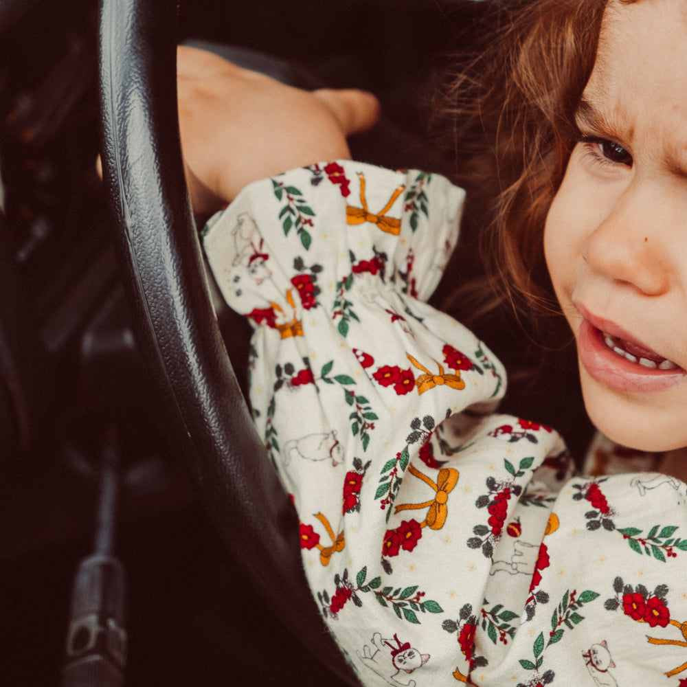 Jej delikatny wzór w wianuszki i świąteczne motywy od razu wprowadza w radosny nastrój. Sukienka została uszyta z miękkiej, organicznej bawełny, dzięki czemu jest przyjazna dla wrażliwej skóry dziecka i wygodna nawet podczas długiego dnia pełnego zabawy i rodzinnych spotkań.