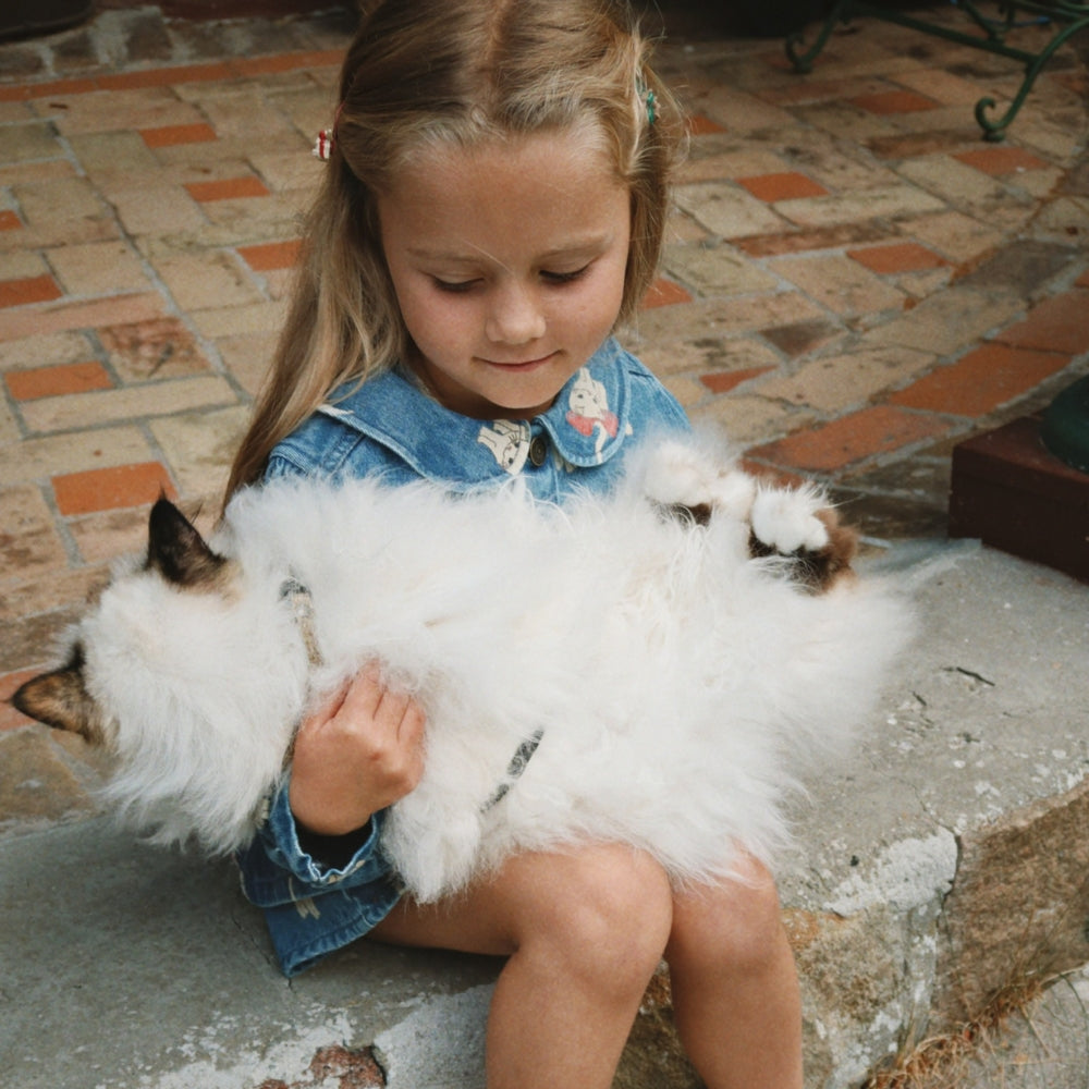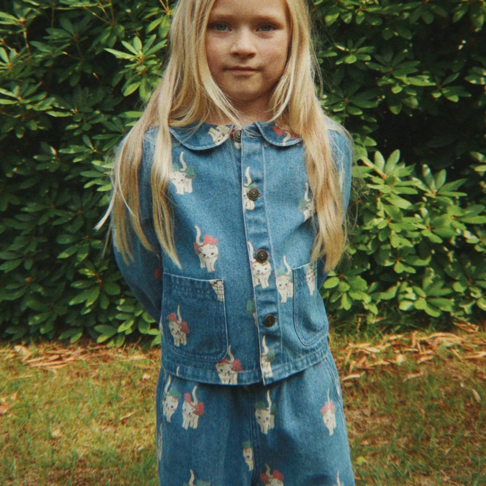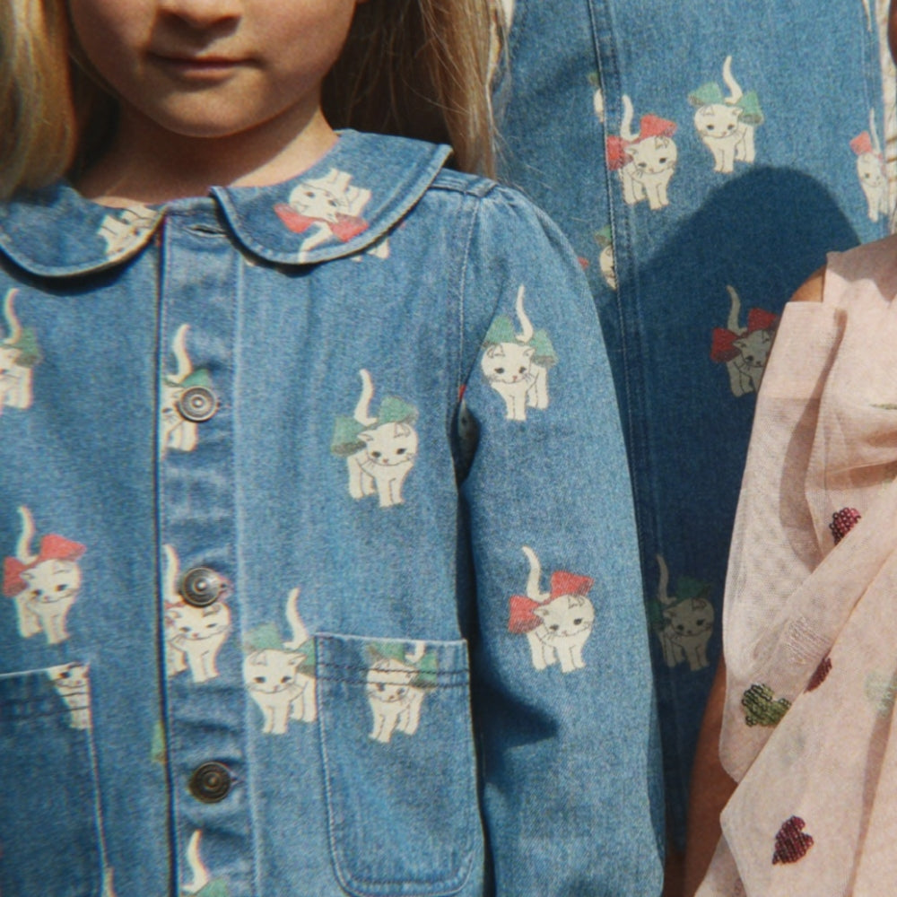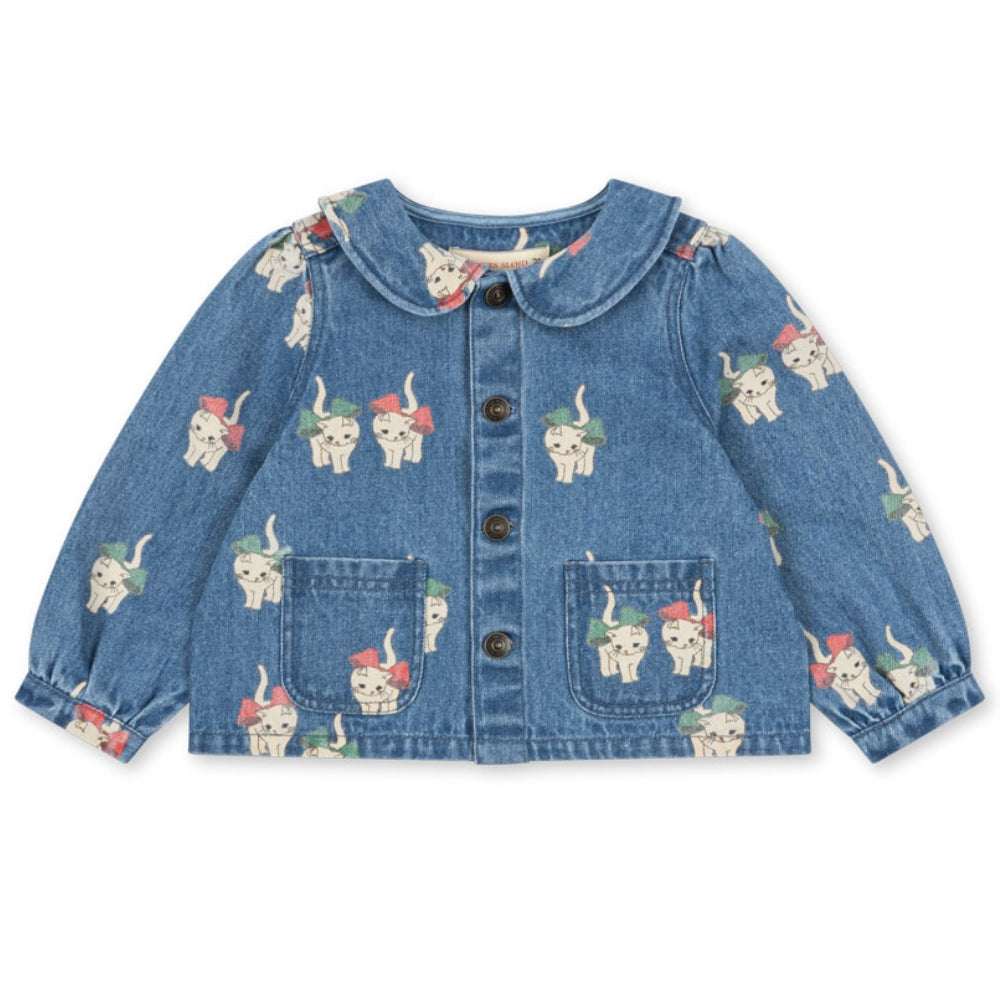 Konges Slojd Kurtka dżinsowa dla dziewczynki z kołnierzykiem Magot Bow Kitty