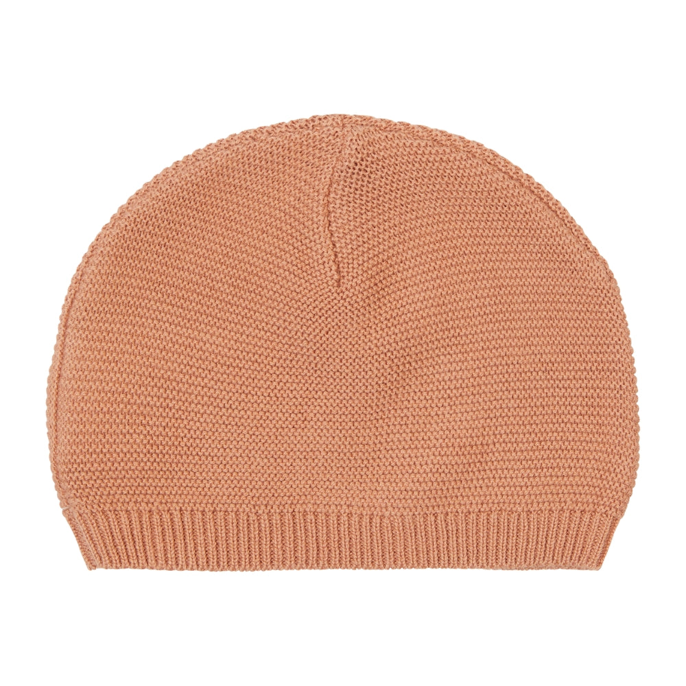 Klasyczny, dzianinowy splot w różowym odcieniu sprawia, że czapeczka prezentuje się uroczo i pasuje do wielu stylizacji.