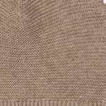 Klasyczny, dzianinowy splot w beżowym odcieniu sprawia, że czapeczka prezentuje się uroczo i pasuje do wielu stylizacji.