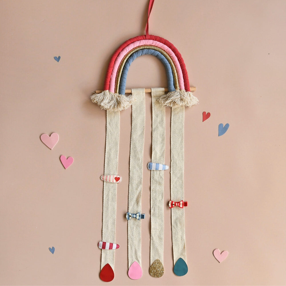 Wieszaczek na spinki z 4 wstążkami Bright Rainbow od Rockahula to idealne rozwiązanie do przechowywania i organizacji ulubionych akcesoriów do włosów.