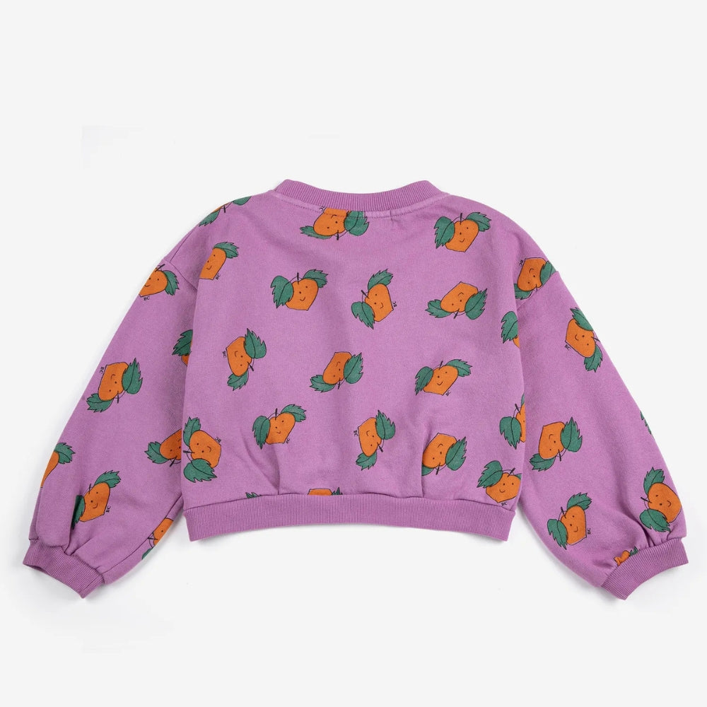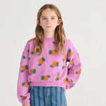 Różowy odcień w połączeniu z nowoczesnym, lekko skróconym krojem oraz uroczym, dziecięcym nadrukiem z mandarynkami sprawia, że bluza świetnie wpisuje się w codzienne stylizacje, dodając im radosnego charakteru.