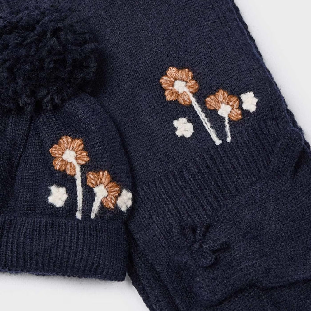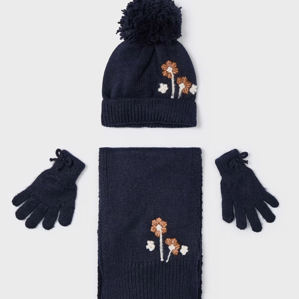 Mayoral Granatowy zestaw 3-cześciowy rękawiczki, czapka i szalik dla dziewczynki rozmiar 10