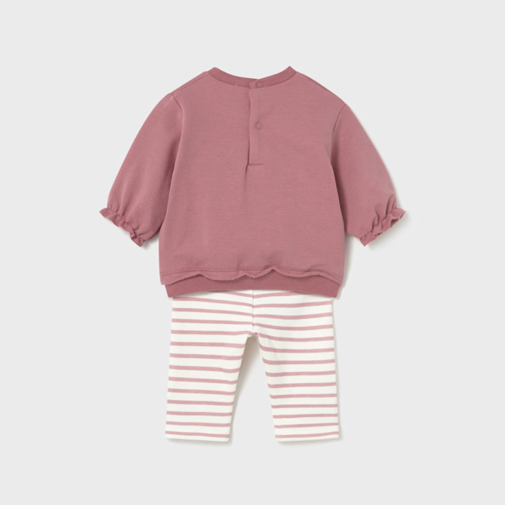 Dzięki harmonijnemu zestawieniu kolorów i ponadczasowemu wzornictwu, komplet dla dziewczynki Mayoral sprawdzi się jako prezent z okazji narodzin lub jako codzienna baza do tworzenia wygodnych i uroczych stylizacji.