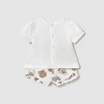 Zestaw składa się z koszulki z krótkim rękawem oraz szortów, co zapewnia dziecku pełen komfort i swobodę ruchów w każdej sytuacji.