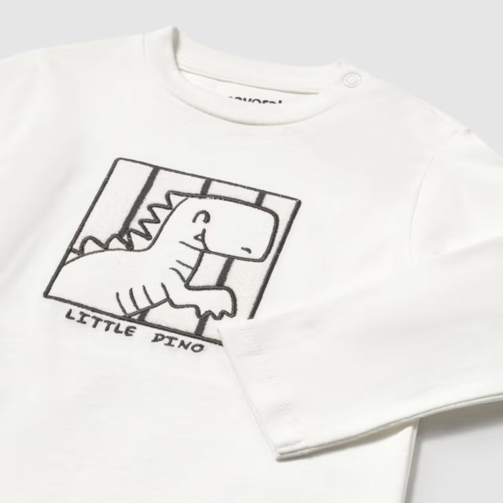 Ta klasyczna koszulka z długim rękawem w delikatnym kolorze śmietankowym została zaprojektowana z myślą o codziennym użytkowaniu i wrażliwej skórze dziecka.