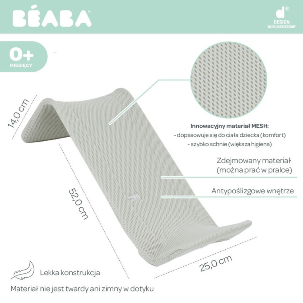 Leżaczek- wkładka do kąpieli niemowląt od marki Beaba to praktyczne i bezpieczne wsparcie podczas pierwszych kąpieli.