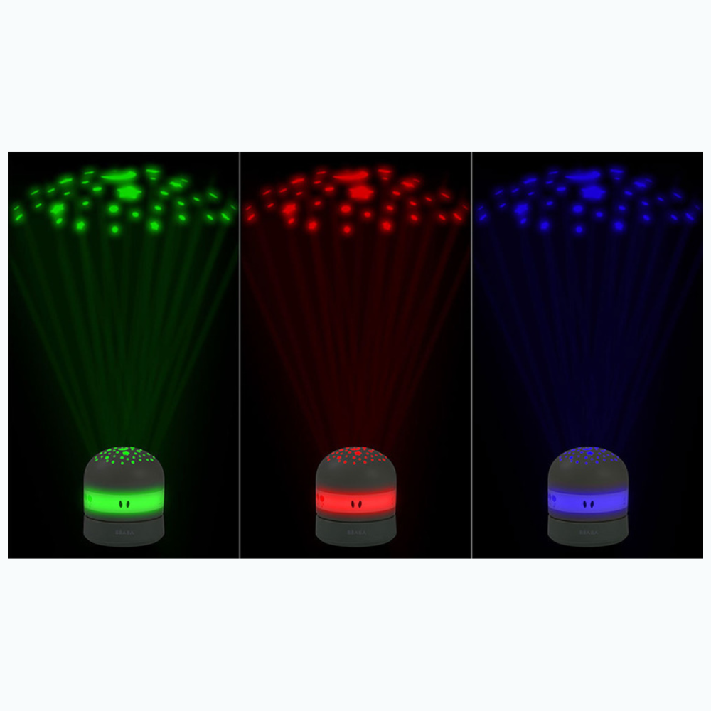Urządzenie Beaba wyświetla gwiazdy w trzech kolorach - czerwony, zielony, niebieski, z możliwością wyboru światła stałego, zmieniającego się lub losowego. Regulowany kąt projekcji pozwala skierować obraz na sufit, ścianę lub w wybrane miejsce – dokładnie tam, gdzie Twoje dziecko lubi patrzeć przed snem.
