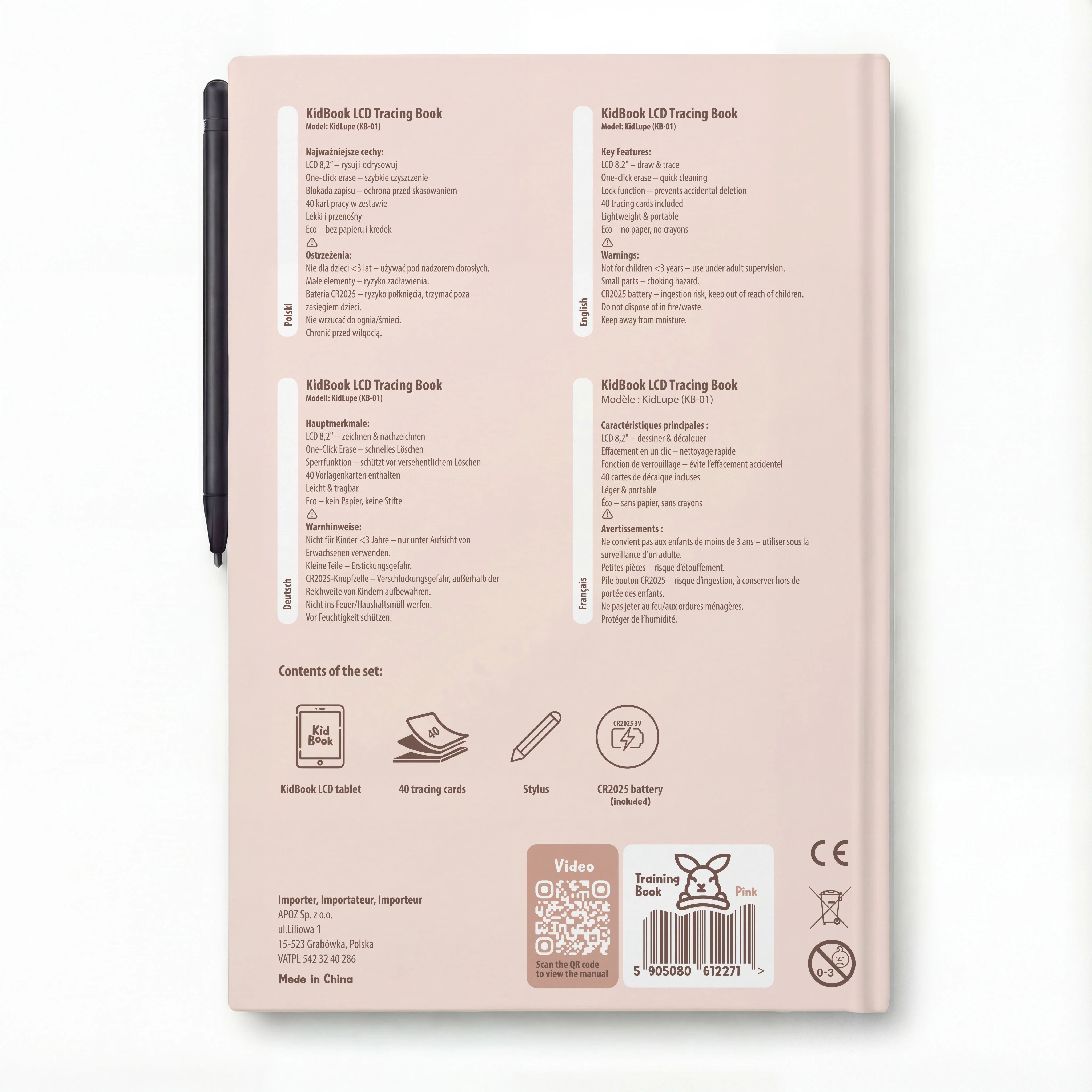 • Zawartość zestawu: tablet LCD KidBook, 40 kart pracy (20 dwustronnych), rysik