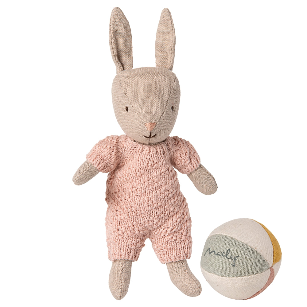 W komplecie znajduje się mała piłka oraz mięciutki króliczek w rozmiarze micro, wyposażony w magnesy w łapkach.