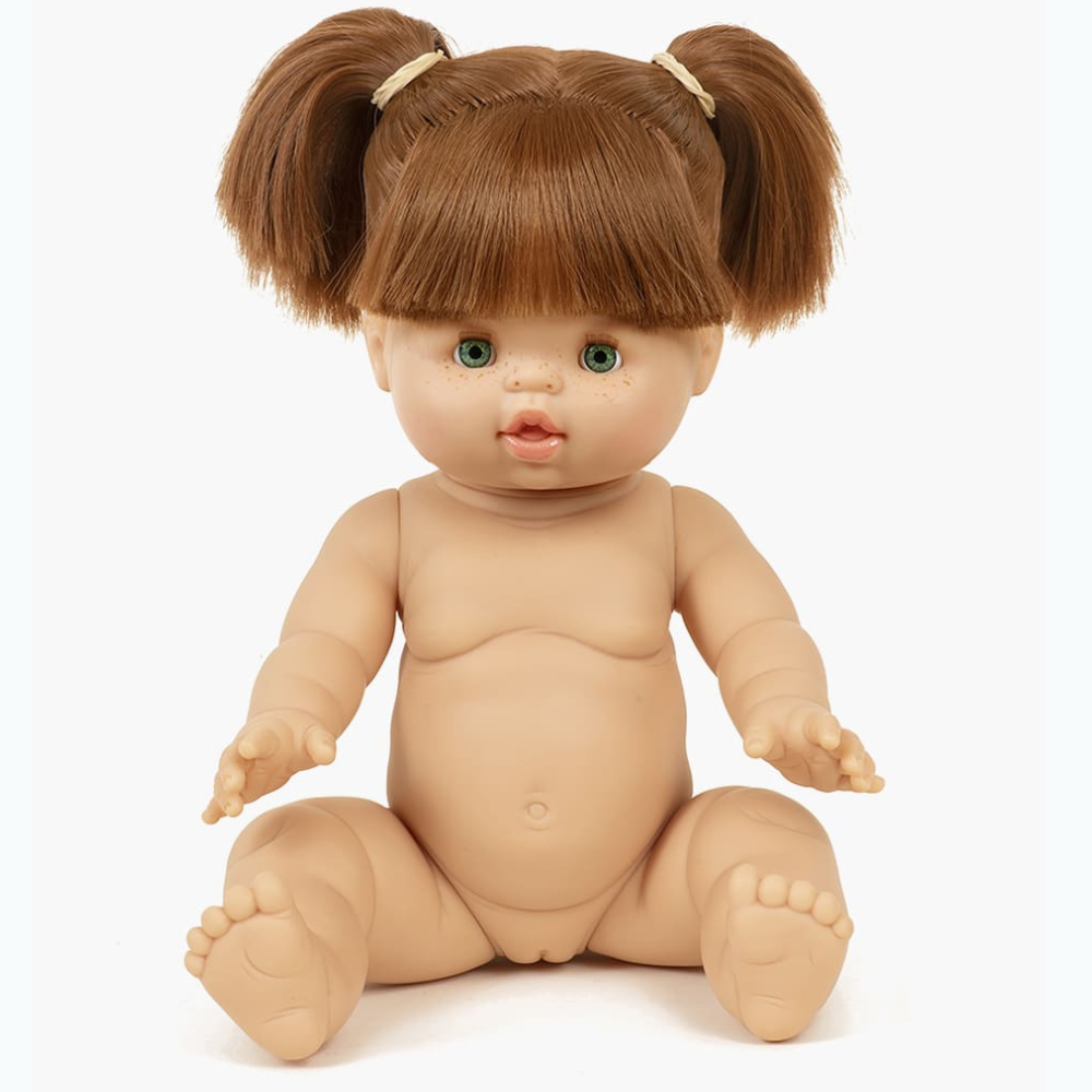 Zielone oczy, piegi na buzi i zaplecione rude warkocze sprawiają, że ta lalka wygląda jak prawdziwa towarzyszka dziecięcych historii.