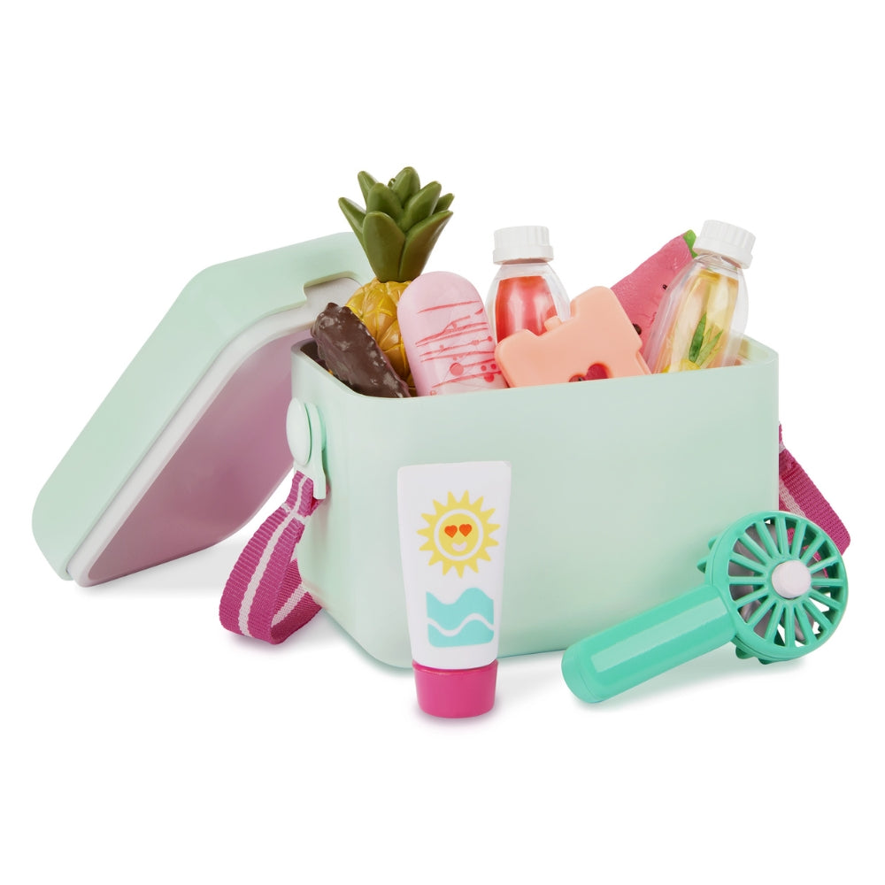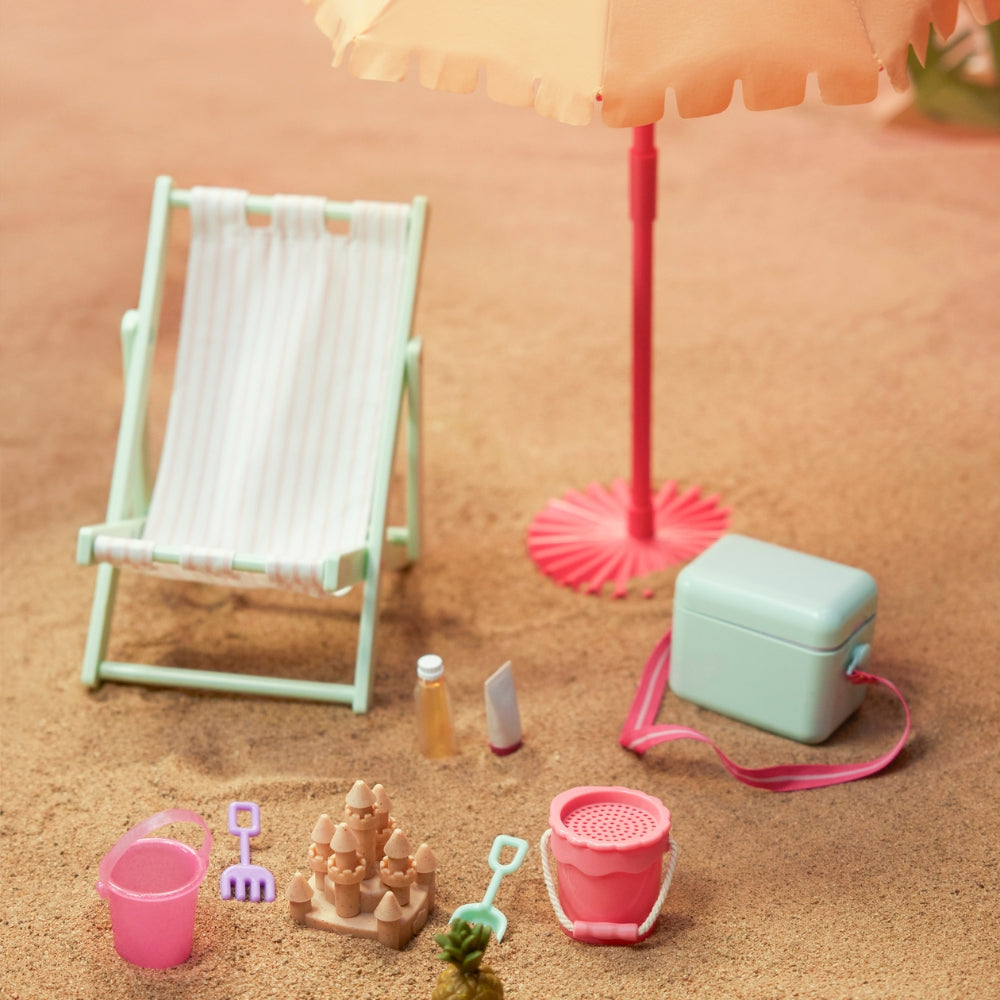 Ten uroczy komplet akcesoriów pozwoli lalce cieszyć się słońcem, relaksem i orzeźwiającymi przekąskami – tak jak podczas prawdziwych wakacji!