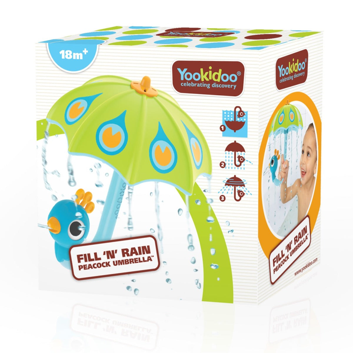 Zabawka do kąpieli Yookidoo w formie uroczego pawiego parasola zamienia codzienną kąpiel w pełną radości i odkryć zabawę.