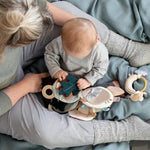 Miękka książeczka dla niemowlaka sensoryczna sowa Blinky marki Sebra.