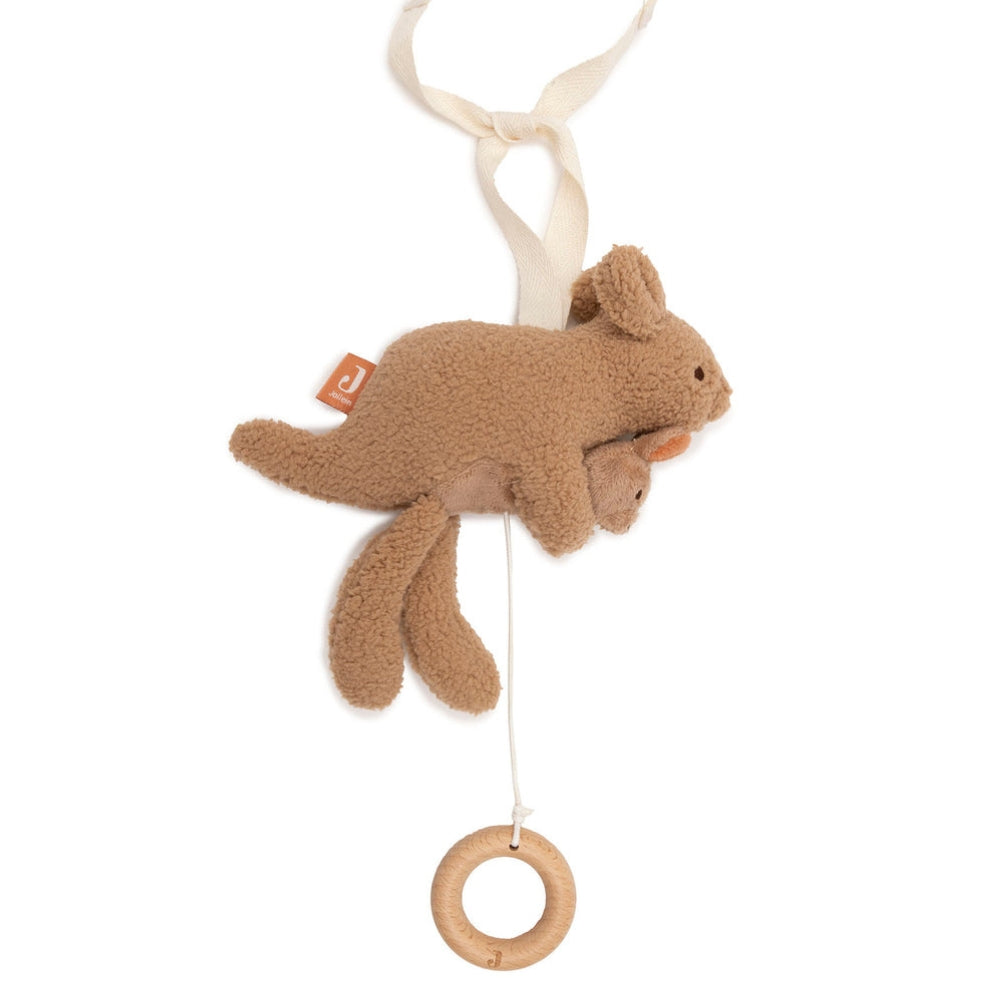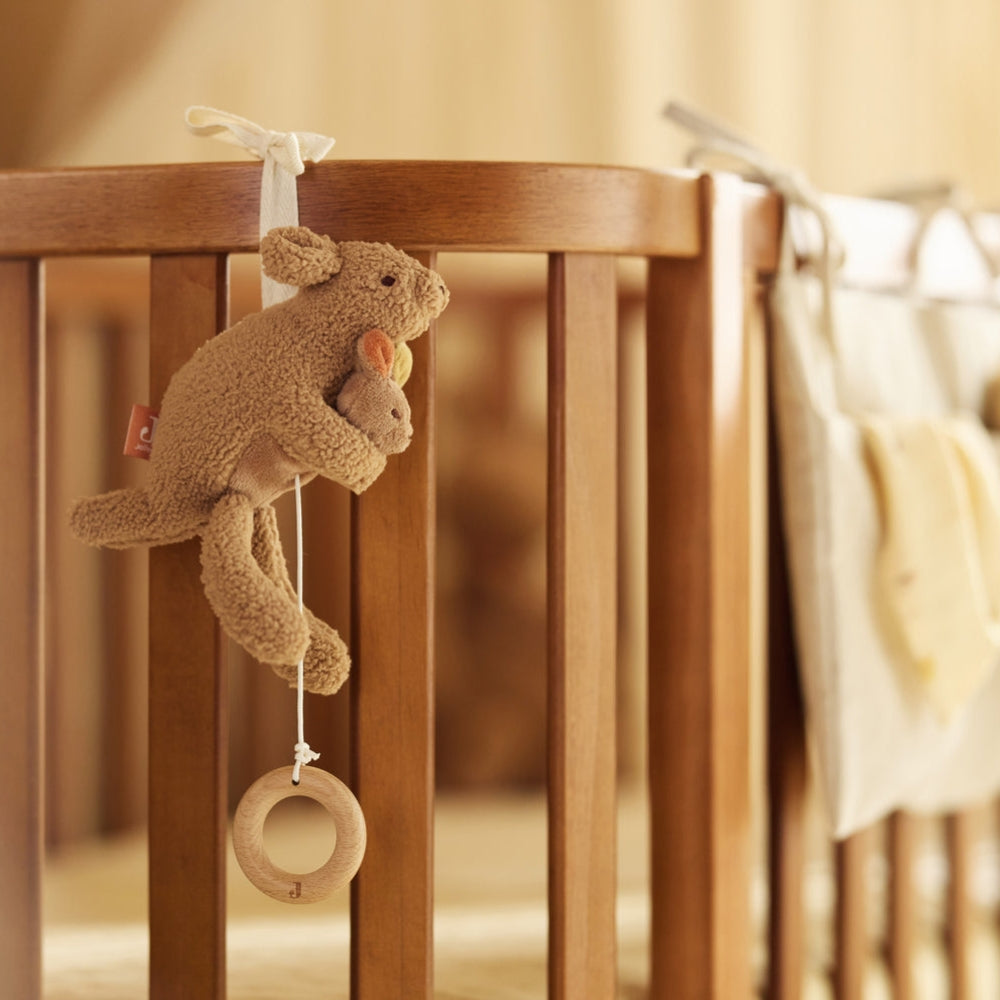 Zawieszka do wózka Jollein z motywu Kangaroots to urocza przywieszka muzyczna, która pomaga maluszkowi spokojnie zasnąć.