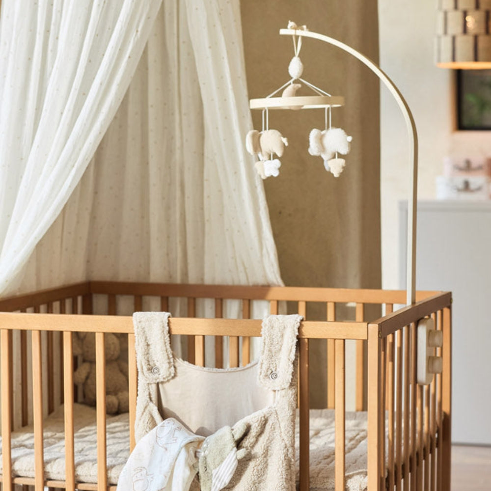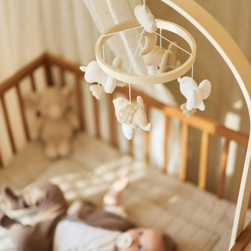 Karuzelka do łóżeczka świetnie sprawdza się także jako element wieczornego wyciszenia, gdy chcesz wprowadzić stały, kojący schemat przed snem.