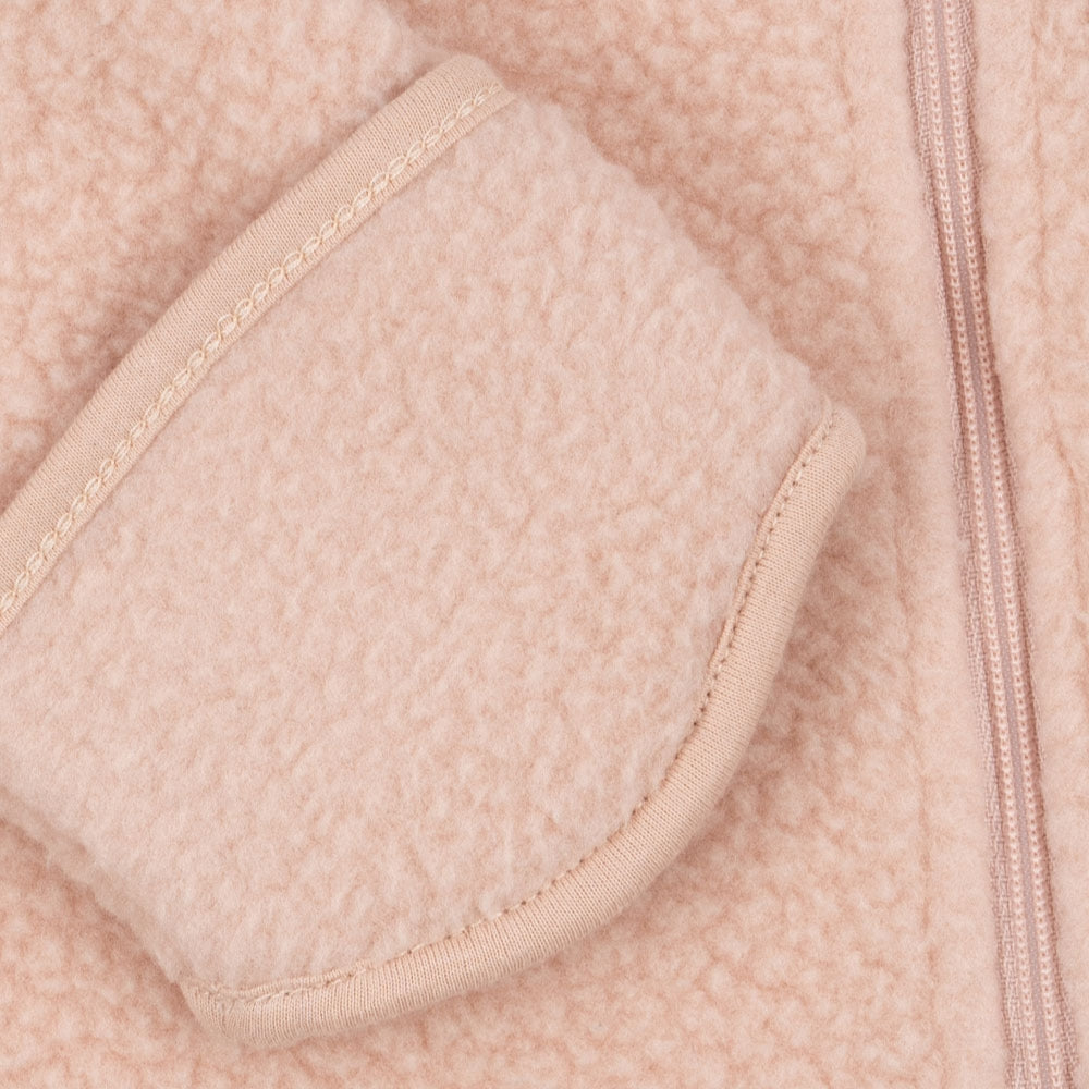 Uszyty z delikatnego materiału typu pile fleece, kombinezon niemowlęcy doskonale sprawdza się zarówno podczas drzemek, jak i spacerów na świeżym powietrzu.