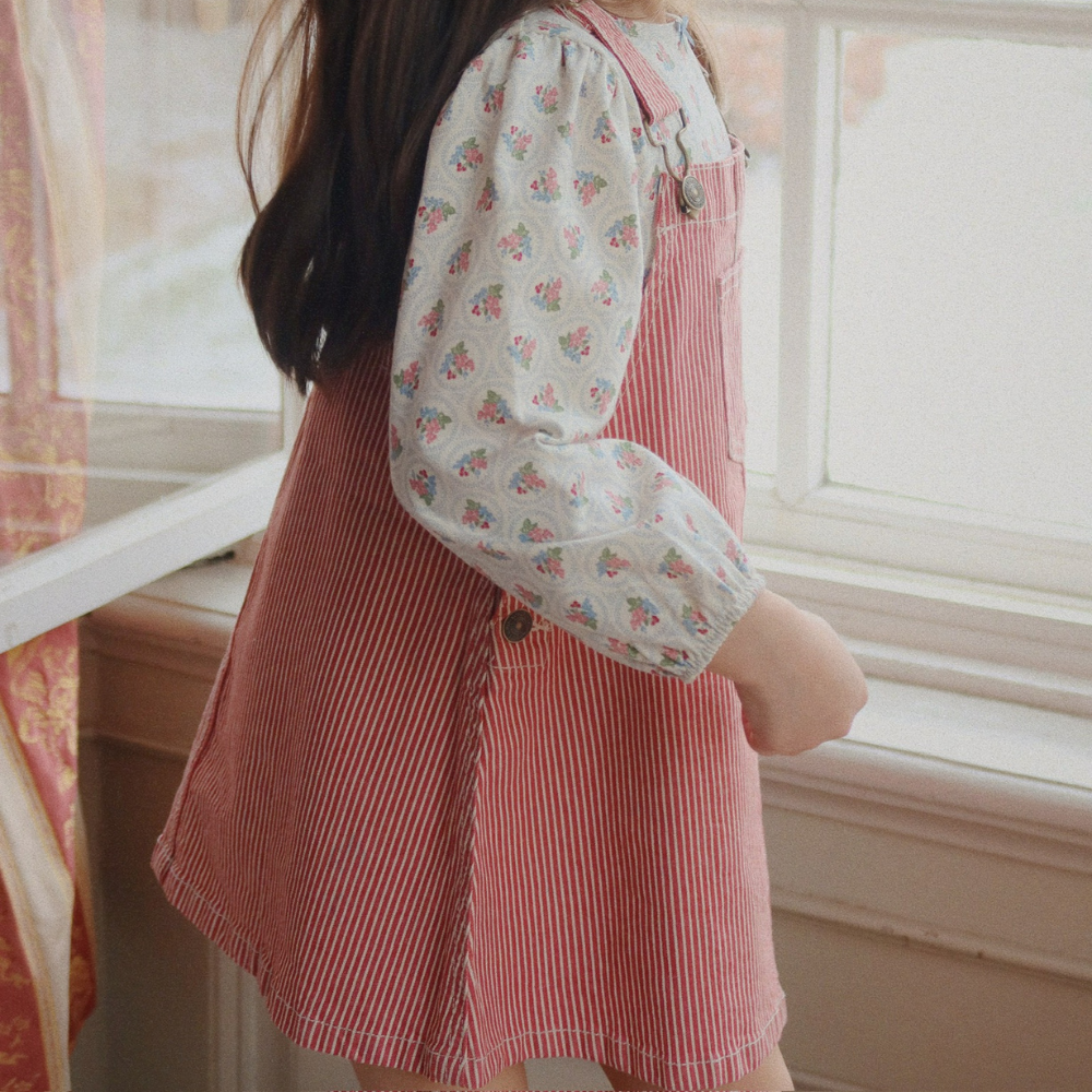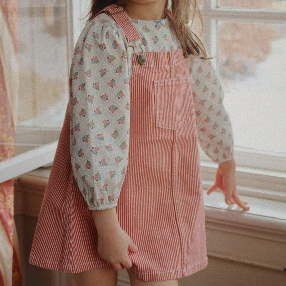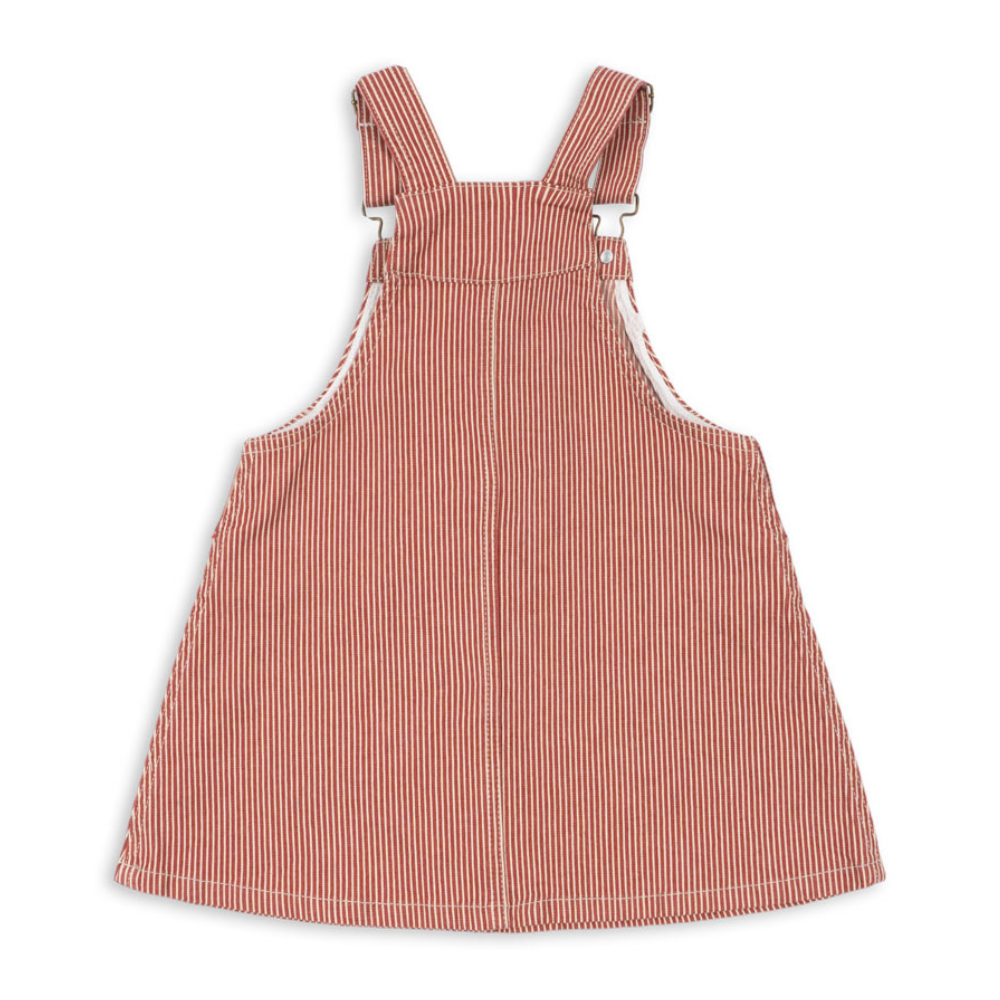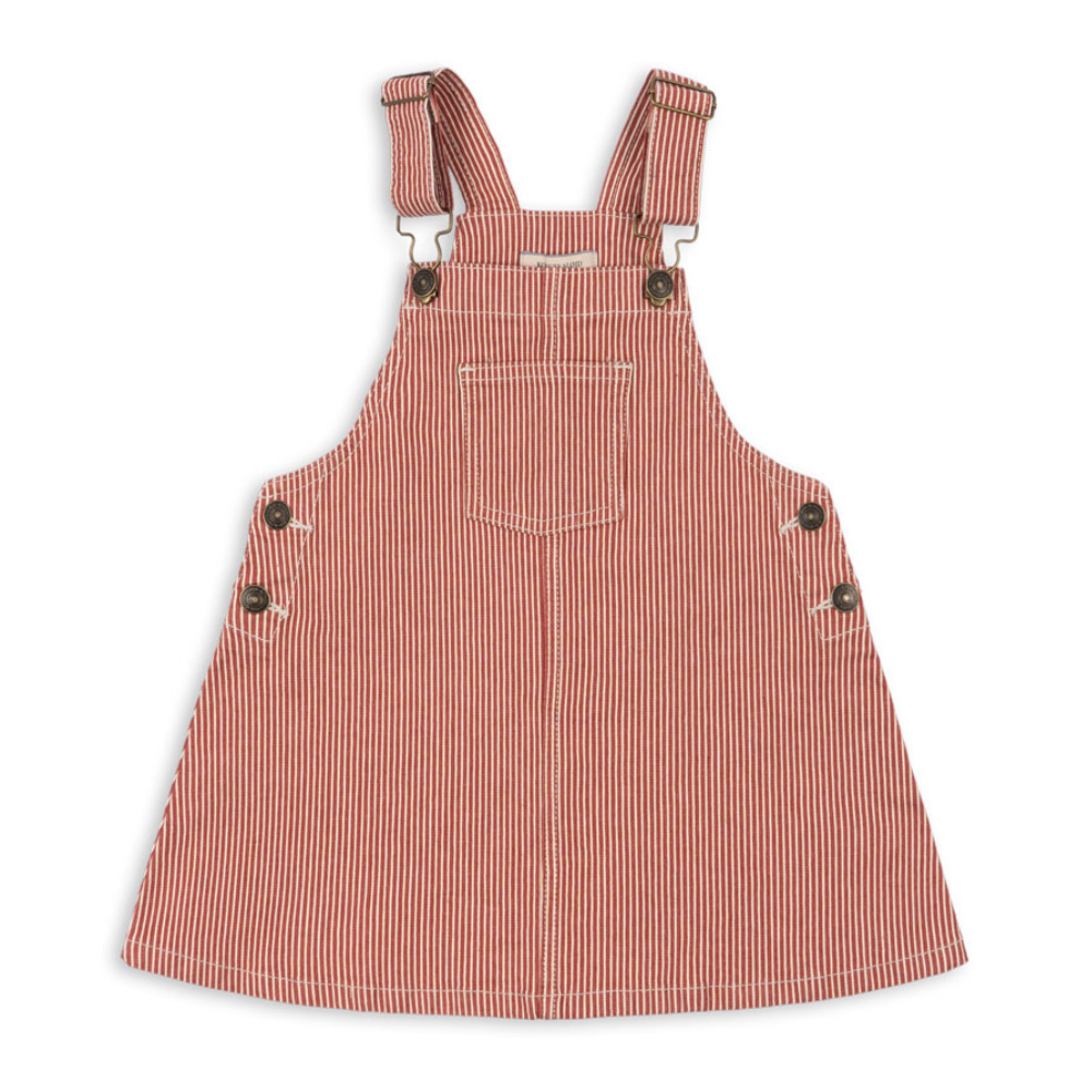Uszyta z wytrzymałej tkaniny, ma klasyczne szelki z klamrą z przodu, praktyczną naszywaną kieszonkę i swobodny krój w kształcie litery A – idealny do warstwowania na bluzkę czy golf.
