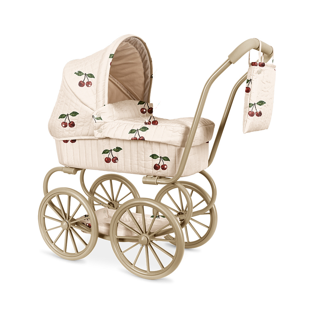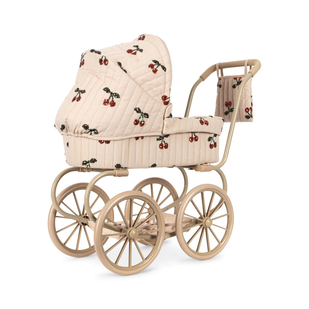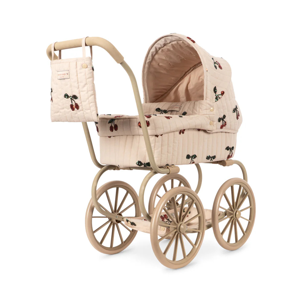 Ten wózek dla lalek z charakterystycznym wiśniowym printem CHERRY zachęca do opowiadania historii, troski i wspólnych spacerów po domu.