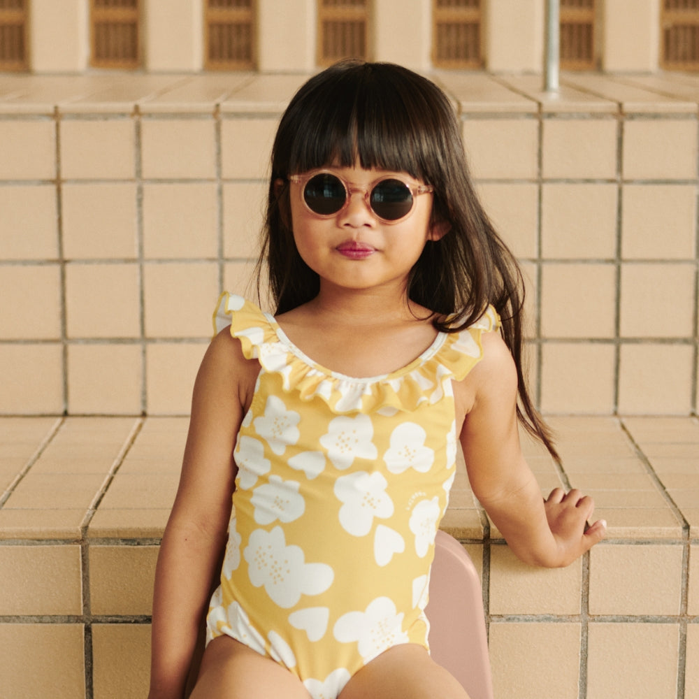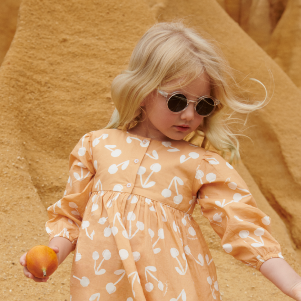 Retro, okrągłe okulary przeciwsłoneczne DARLA od Liewood to świetny wybór na wiosnę i lato, kiedy maluch spędza dużo czasu na zewnątrz.
