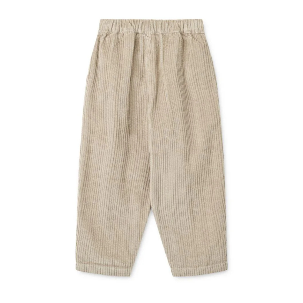Te cool, „chunky” spodnie mają swobodny, lekko zakrzywiony krój z drobnymi zakładkami z przodu, dzięki czemu dziecko czuje się komfortowo i wygląda stylowo. Wykonane w 100% z certyfikowanej bawełny organicznej GOTS, są przyjemne w dotyku i trwałe, a skośne kieszenie oraz regulowana, elastyczna talia ułatwiają dopasowanie.