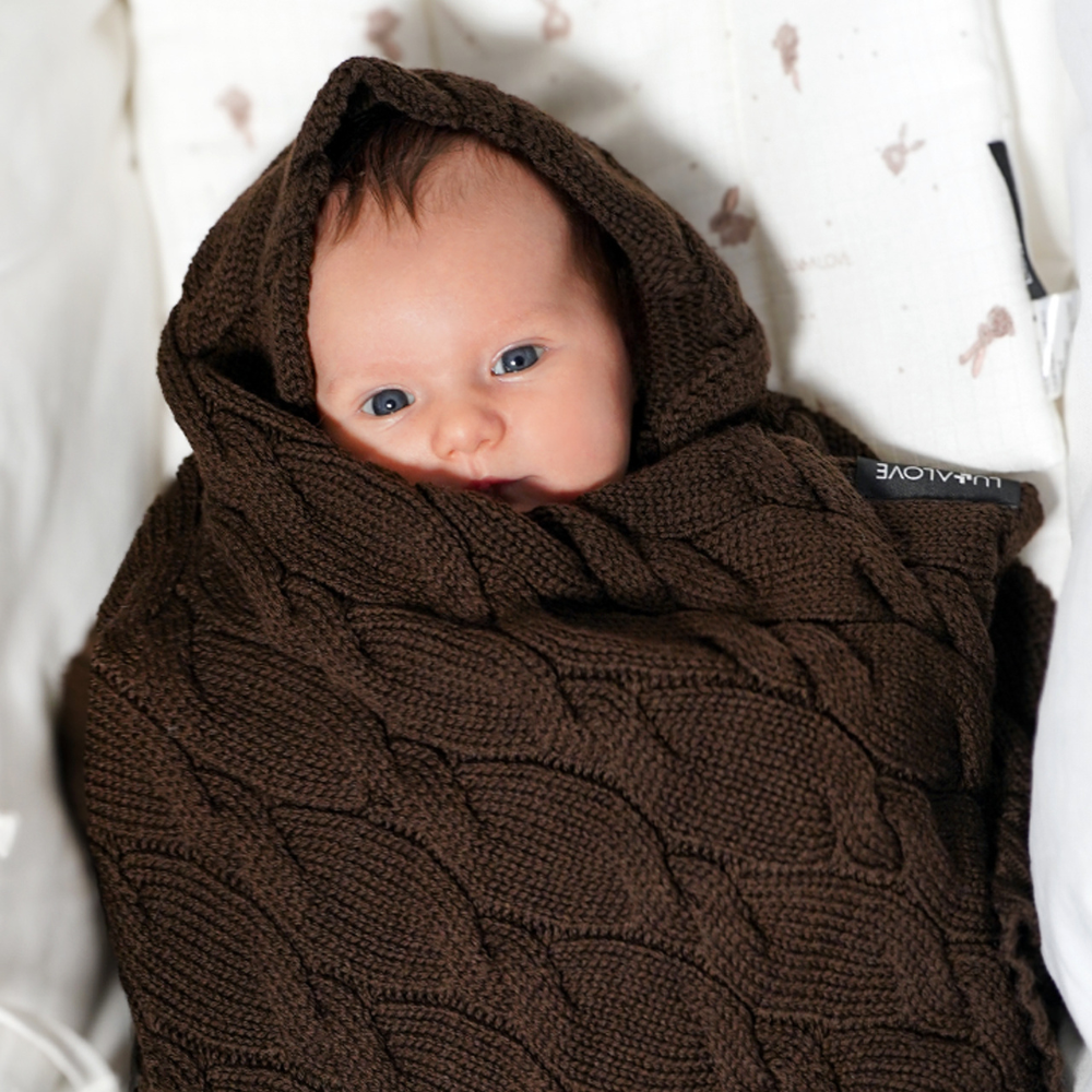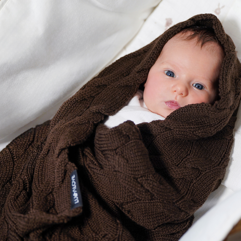 Lullalove Kocyk z wełny merino 80x100 cm Czekolada